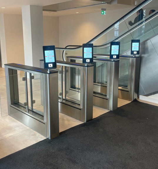 Für beengte Platzverhältnisse eignet sich die TriLane Drehsperre mit platzsparender Vereinzelung und optionaler Unterkriech- sowie Übersteigdetektion. Bei höheren Ansprüchen an Design und Komfort überzeugt das FirstLane Speedgate mit eleganten Glastüren, DIRAS-Infraroterkennungstechnologie und bidirektionalem Verkehrsfluss. Maximale Sicherheit bieten mannshohe Drehkreuze mit 2,30 Meter Höhe, die ein Übersteigen nahezu unmöglich machen.